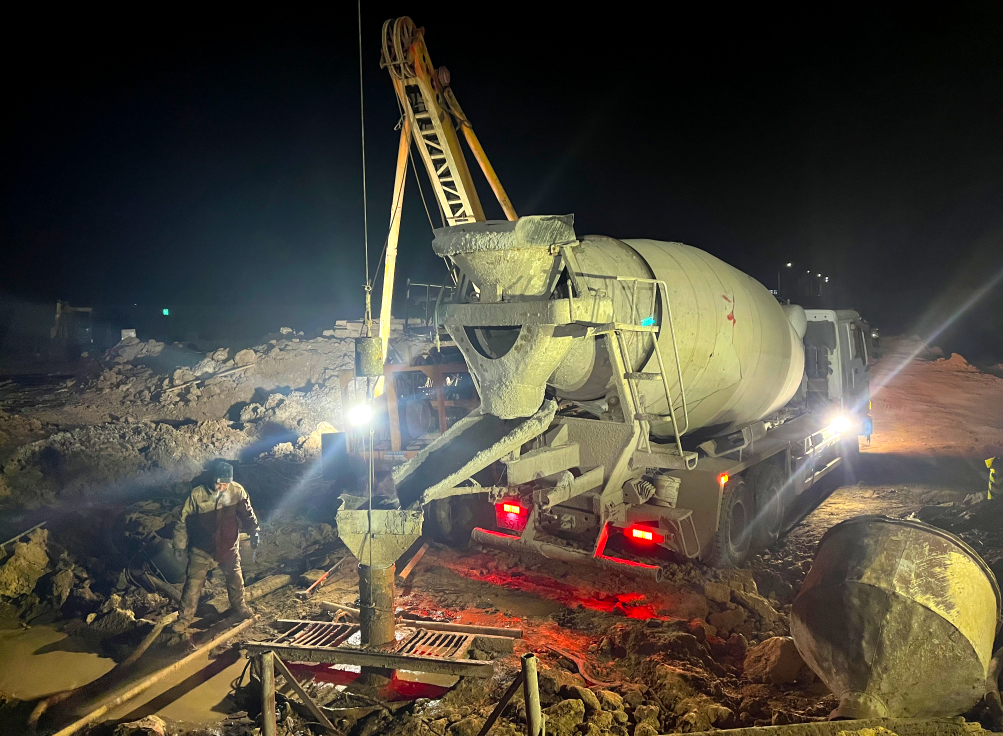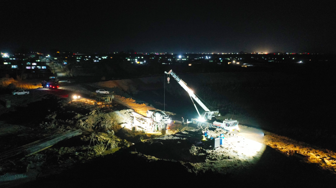 為了家鄉(xiāng)百姓早日走上踏實(shí)的橋面,錦州華地建設(shè)集團(tuán)開展夜間施工,鉆機(jī)不斷、澆筑不斷,燈火通明的黑夜里,譜寫了錦州華地建設(shè)集團(tuán)建設(shè)者緊抓工期的辛勤勞作。